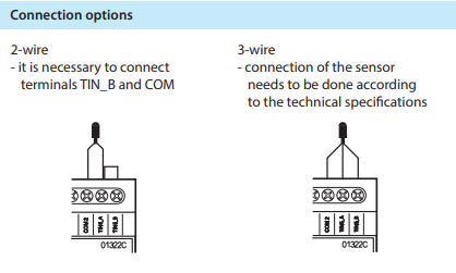 - Ellenállás-hőmérséklet-érzékelők (RTD), mint a Ni1000, Pt1000, Pt100 2 és 3 vezetékes csatlakozással.