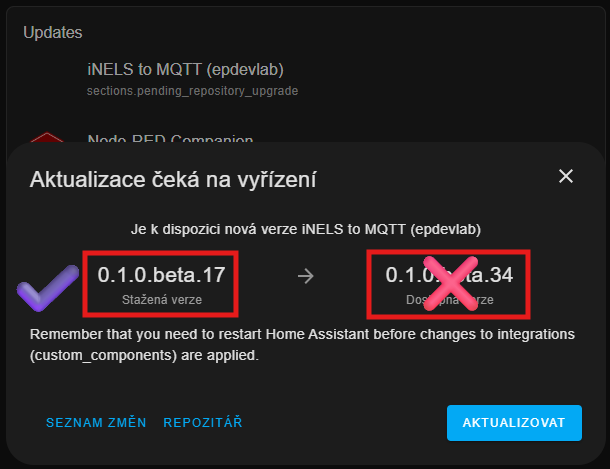 if you anyhow wants to update it, please keep in mind, that the highest possible version in 0.1.0.beta.23(!!!), but it's not tested with HA Core 2024.3.3 so we can't guarantee its full compatibility and functionality.