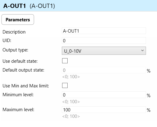 Minimum Level: Specifies the minimum voltage level that can be outputted by the analog outputs.