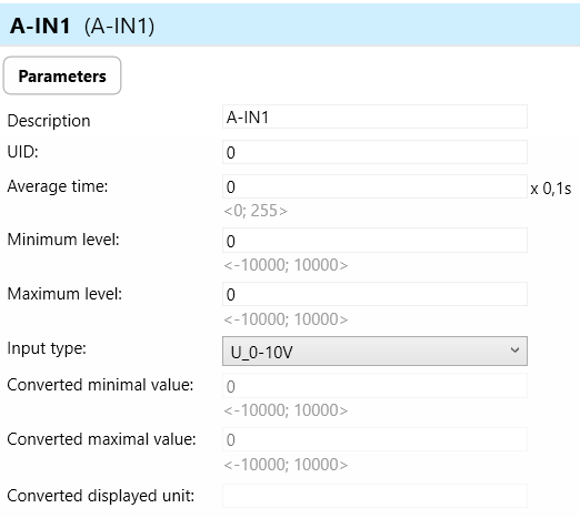 Parameters for A-IN1-3 (Analog Inputs 1-3):