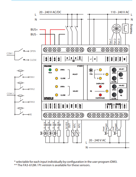 FA3-612M is a unit (actuator) designed to control fancoil units using analogue/digital inputs and analog/relay outputs.
