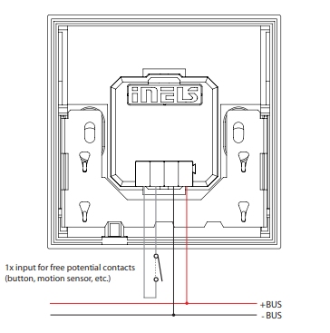 iNELS3 peripheral units are connected to the system through the BUS installation. Installation BUS conductors are connected to the terminal units to BUS+ and BUS- terminals, wires cannot be interchanged. For the installation of BUS, it is necessary to use a cable with a twisted pair of wires with a diameter of at least 0.8 mm, the recommended cable is iNELS BUS Cable, whose features best meet the requirements of the BUS installation. Bearing in mind that in terms of all the properties, it is possible in most cases to also use the cable JYSTY 1x2x0.8 or JYSTY 2x2x0.8, however, it is not recommended as the best option. With a cable with two pairs of twisted wires, it is not possible to use the second pair of the other for modulated signal due to the speed of communications; it is not possible within one cable to use one pair for one segment BUS and the second pair for the second segment BUS. For the installation of BUS, it is vital to ensure that it is kept at a distance from the power lines of at least 30 cm and must be installed in accordance with its mechanical properties. To increase the mechanical resistance of cables we recommend installation into a conduit of suitable diameter. BUS topology installation is free except for the ring, wherein each end of the bus must terminate at the terminals BUS + and BUS- peripheral unit. While maintaining all the above requirements, the maximum length of one segment of the installation BUS can reach up to 300 m. Due to the data communication and supply of units in one pair of wires, it is necessary to keep in mind the diameter of wires regarding voltage loss on the lead and the maximum current drawn. The maximum length of the BUS applies, provided that it complies with the tolerance of the supply voltage.