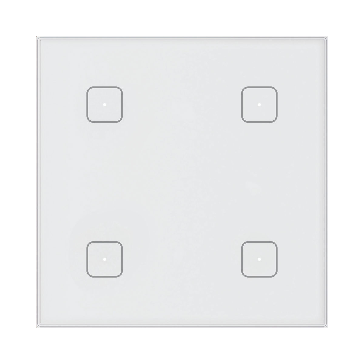 Wall-mounted glass touch controls, sharp, 4-button, built-in temperature sensor, 1x temperature input, 1x digital input.