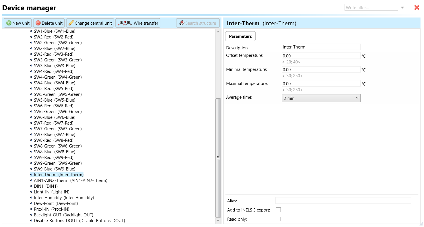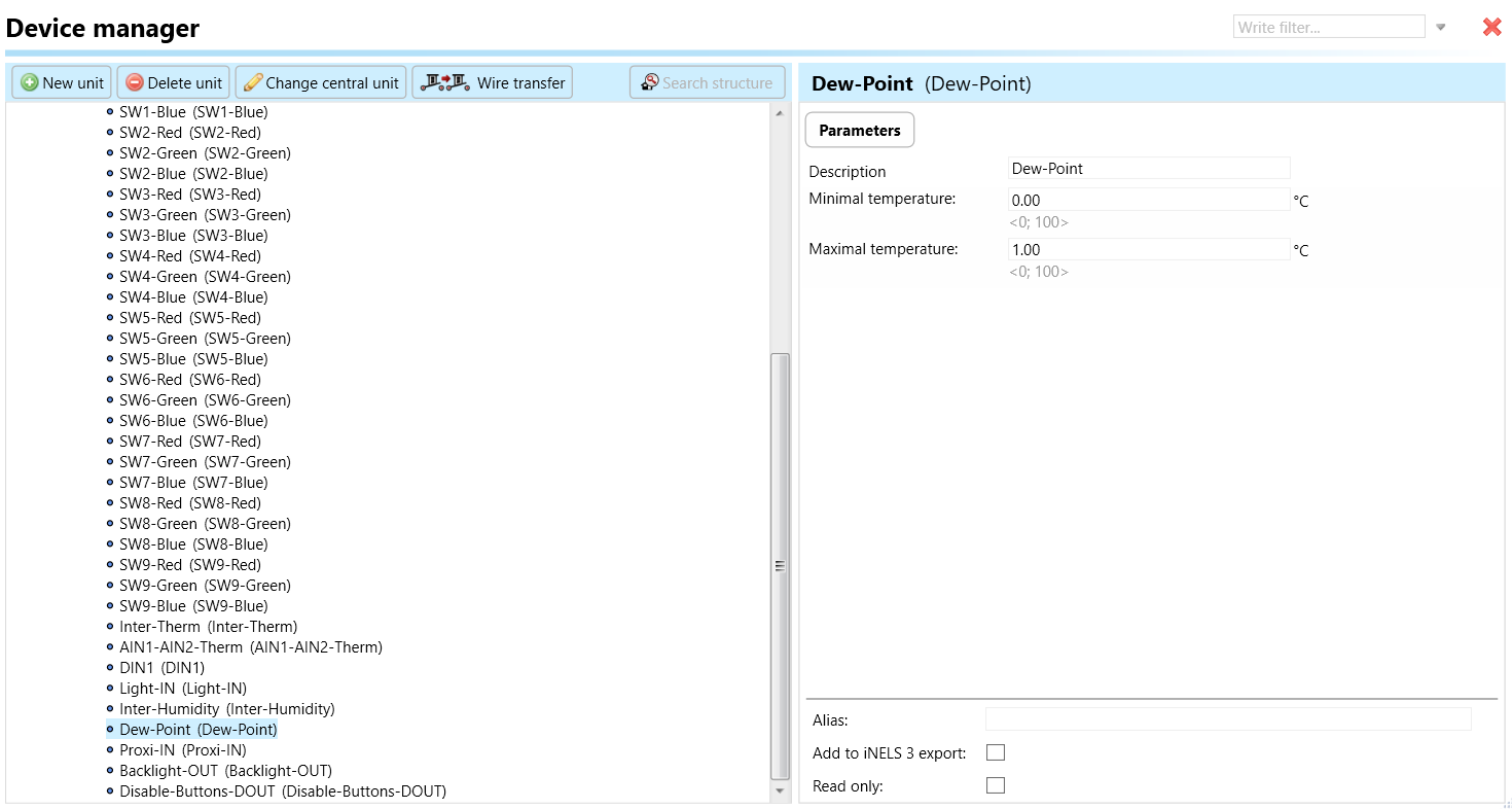 Begin by accessing the iDM3 interface on your PC connected to CU. Navigate to the Device Manager section and carefully select the units and parameters you wish to control. This step is essential for determining what gets exported to the iNELS cloud and app.