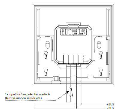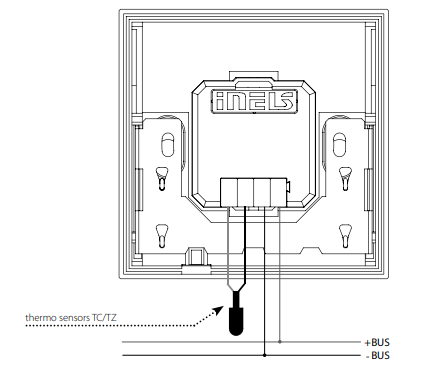 iNELS3 peripheral units are connected to the system through the BUS installation. Installation BUS conductors are connected to the terminal units to BUS+ and BUS- terminals, wires cannot be interchanged. For the installation of BUS, it is necessary to use a cable with a twisted pair of wires with a diameter of at least 0.8 mm, the recommended cable is iNELS BUS Cable, whose features best meet the requirements of the BUS installation. Bearing in mind that in terms of all the properties, it is possible in most cases to also use the cable JYSTY 1x2x0.8 or JYSTY 2x2x0.8, however, it is not recommended as the best option. With a cable with two pairs of twisted wires, it is not possible to use the second pair of the other for modulated signal due to the speed of communications; it is not possible within one cable to use one pair for one segment BUS and the second pair for the second segment BUS. For the installation of BUS, it is vital to ensure that it is kept at a distance from the power lines of at least 30 cm and must be installed in accordance with its mechanical properties. To increase the mechanical resistance of cables we recommend installation into a conduit of suitable diameter. BUS topology installation is free except for the ring, wherein each end of the bus must terminate at the terminals BUS + and BUS- peripheral unit. While maintaining all the above requirements, the maximum length of one segment of the installation BUS can reach up to 300 m. Due to the data communication and supply of units in one pair of wires, it is necessary to keep in mind the diameter of wires regarding voltage loss on the lead and the maximum current drawn. The maximum length of the BUS applies, provided that it complies with the tolerance of the supply voltage.