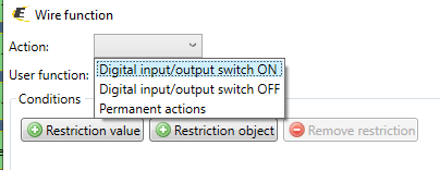 Disable-Buttons-DOUT: This parameter is used for disabling buttons, preventing those buttons from triggering specific actions or functions within a system. The set of actions “Digital input/output switch ON, “Digital input/output switch OFF and permanent action can be used with various functions.