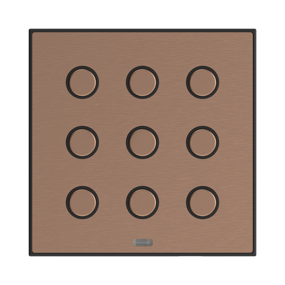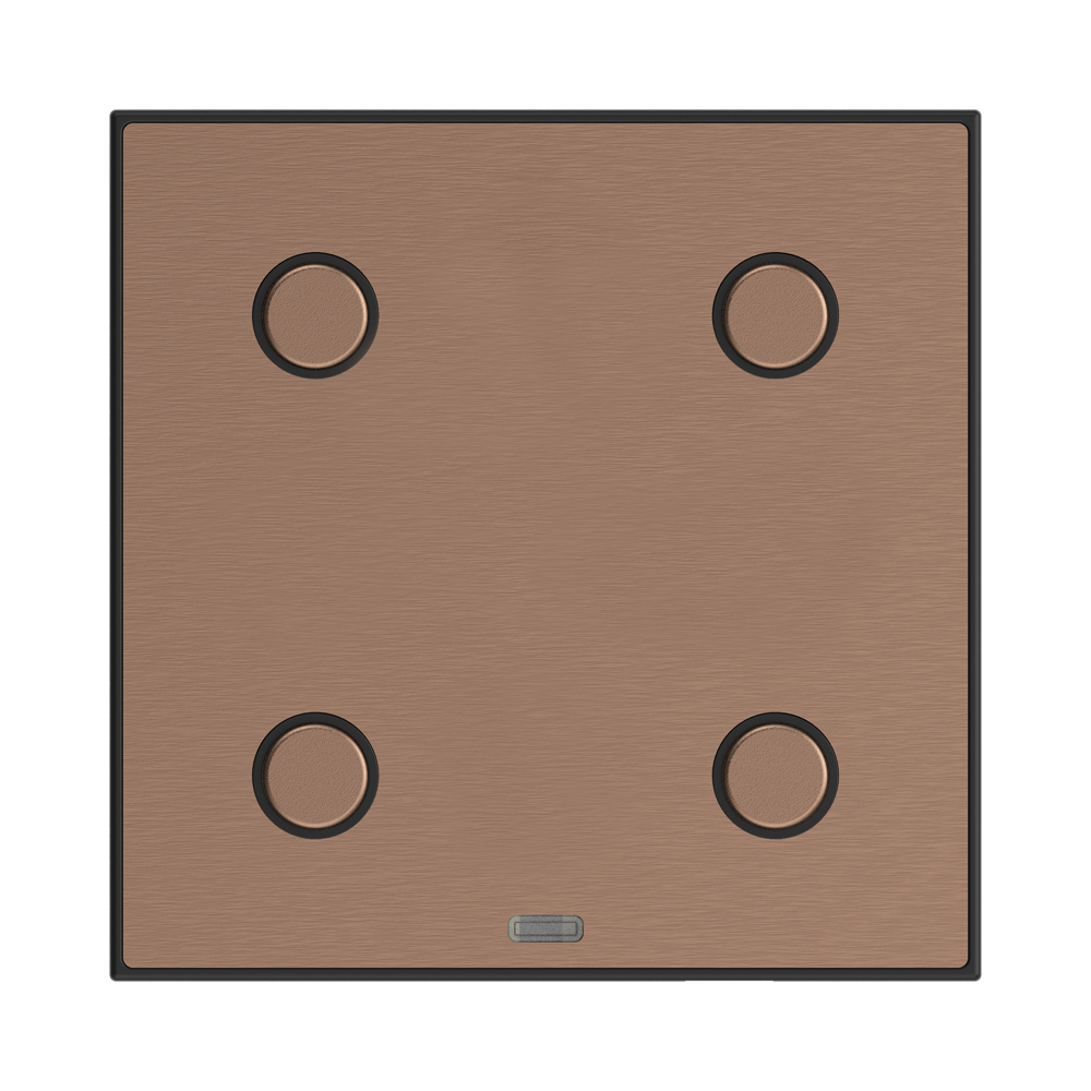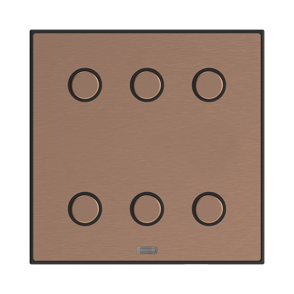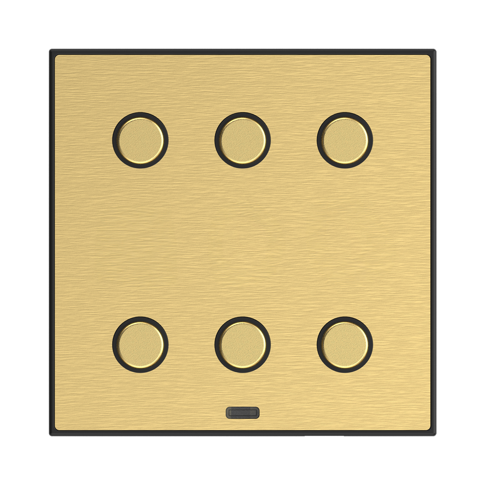 Premium Metal Plates: The switch buttons feature premium metal plates available in antique copper, satin brass, brushed silver, and graphite black finishes.