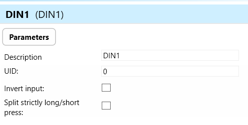 Split Strictly Long/Short Press of DIN: Split strictly long/short press of DIN is a feature that distinguishes between short and long press actions on a digital input channel (DIN).