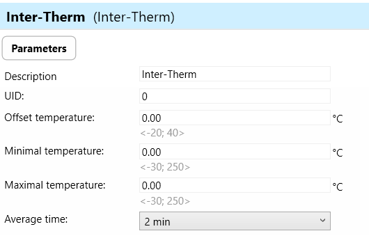 d) Maximal Temperature: Similar to minimal temperature, the maximal temperature parameter sets the maximum acceptable temperature value that the device can measure or handle. It establishes an upper limit to ensure that temperature readings above this threshold are considered valid and within the device's operating range.