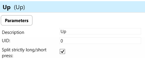 The "Up" parameter refers to the upward button or action on the wall controller. The "Up" button may be used for various purposes depending on the configuration or programming of the wall controller.