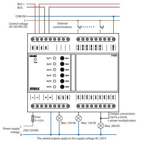 Output Channels: The DA3-66M features 6 semiconductor-controlled 230 V AC outputs. The maximum load for each channel is 150 VA.