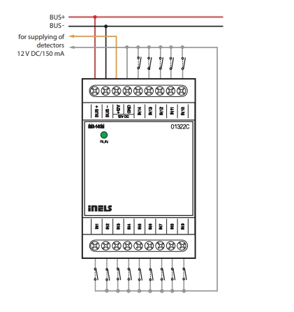 Increased Consumption Notice: Active use of the 12 V DC output for powering detectors increases the nominal consumption of units from the BUS( see technical data sheet).