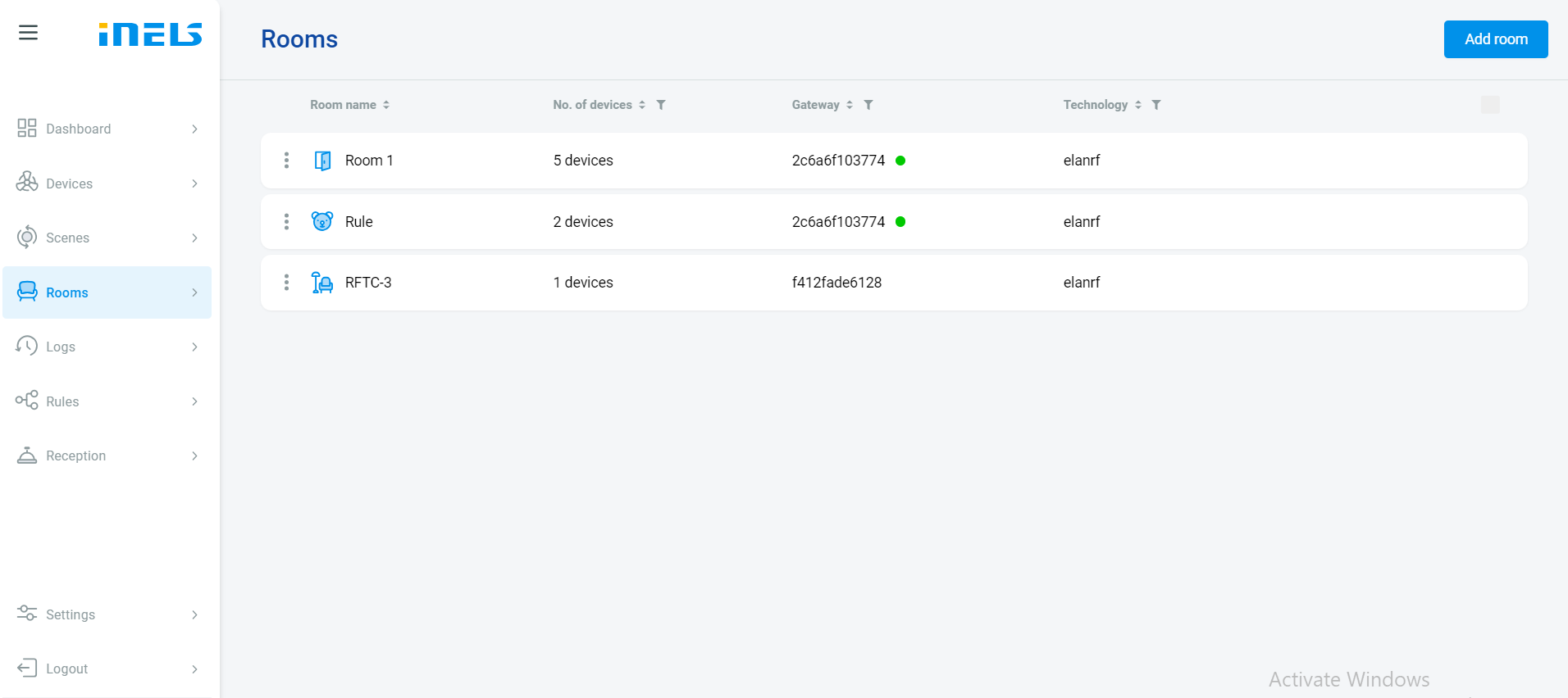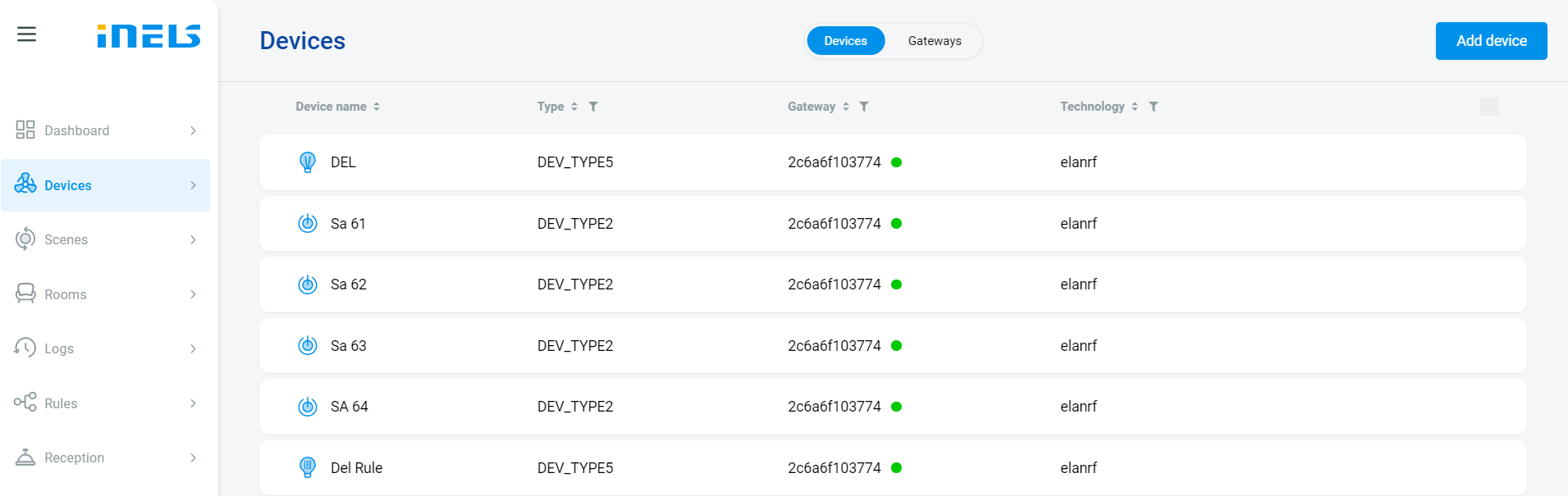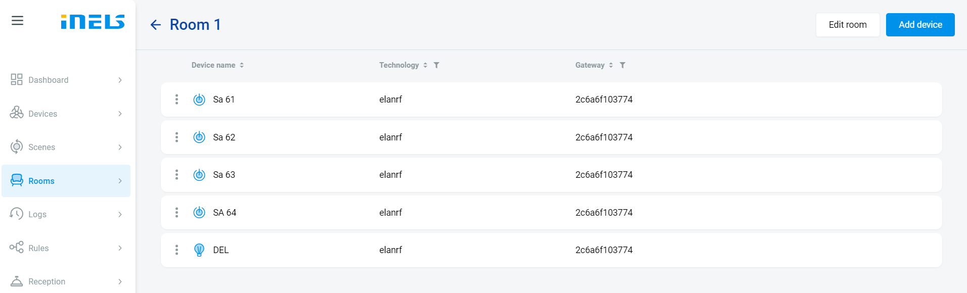 Rooms and devices added via the INELS mobile application on wireless Gateways are automatically integrated into the system.