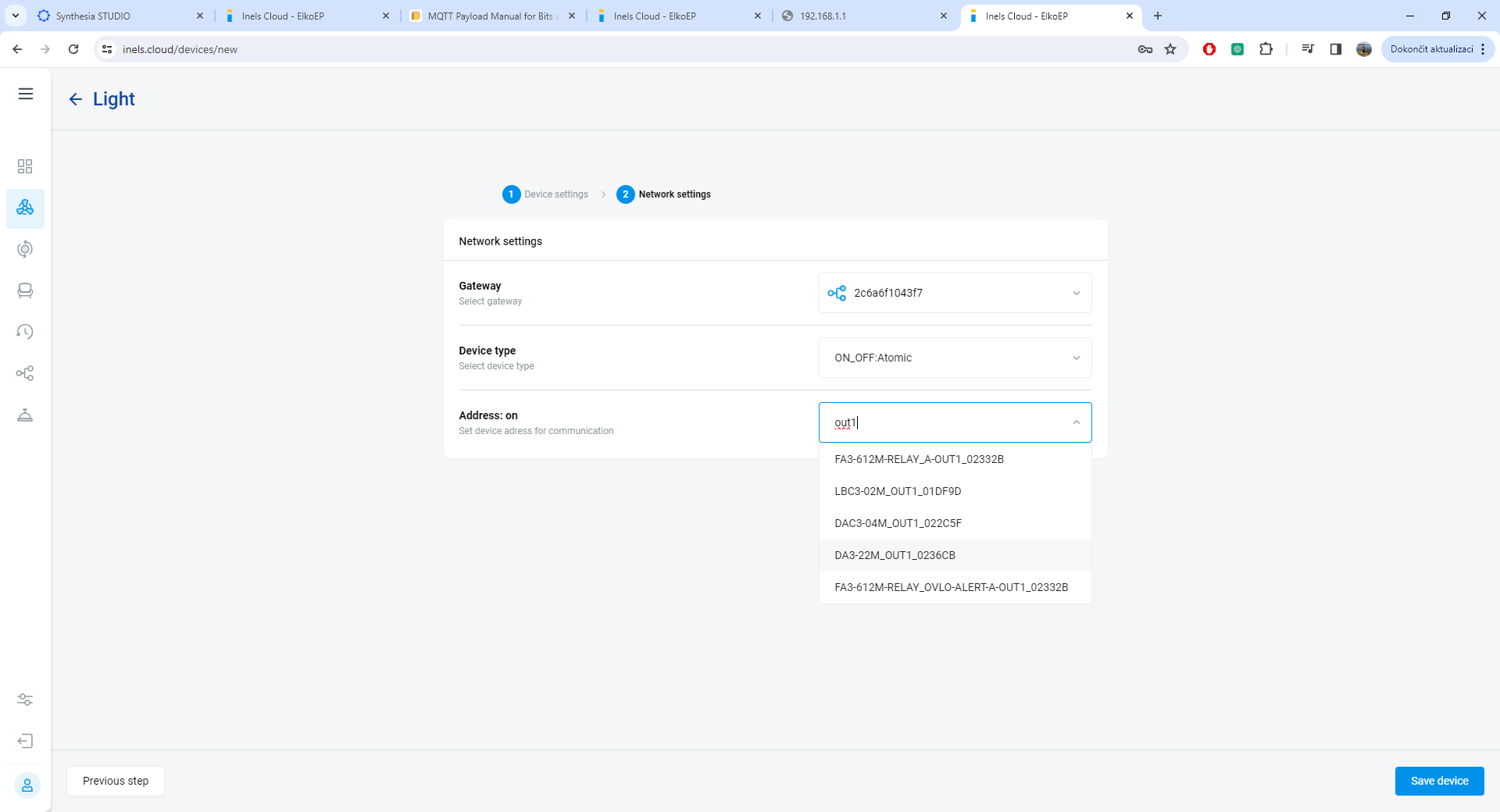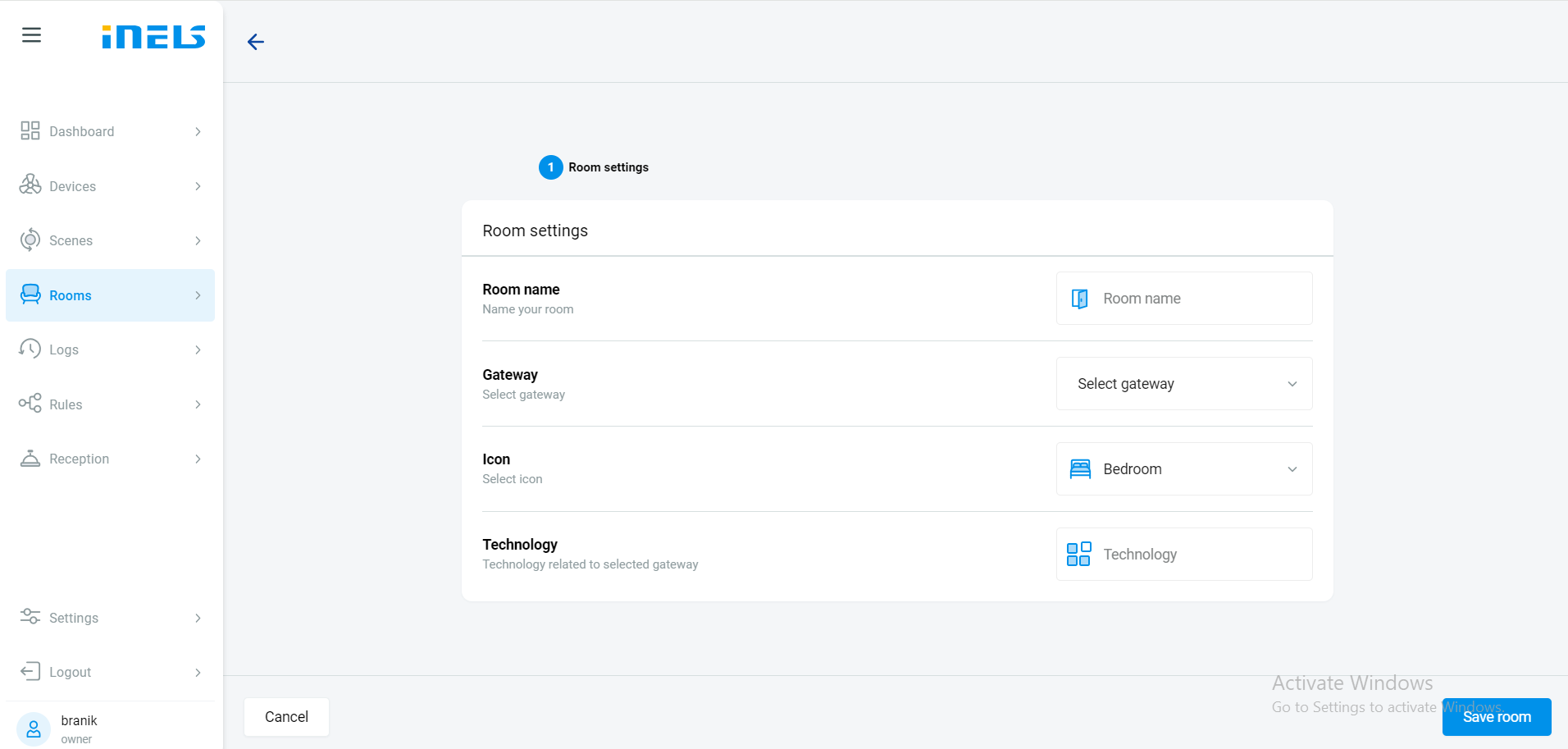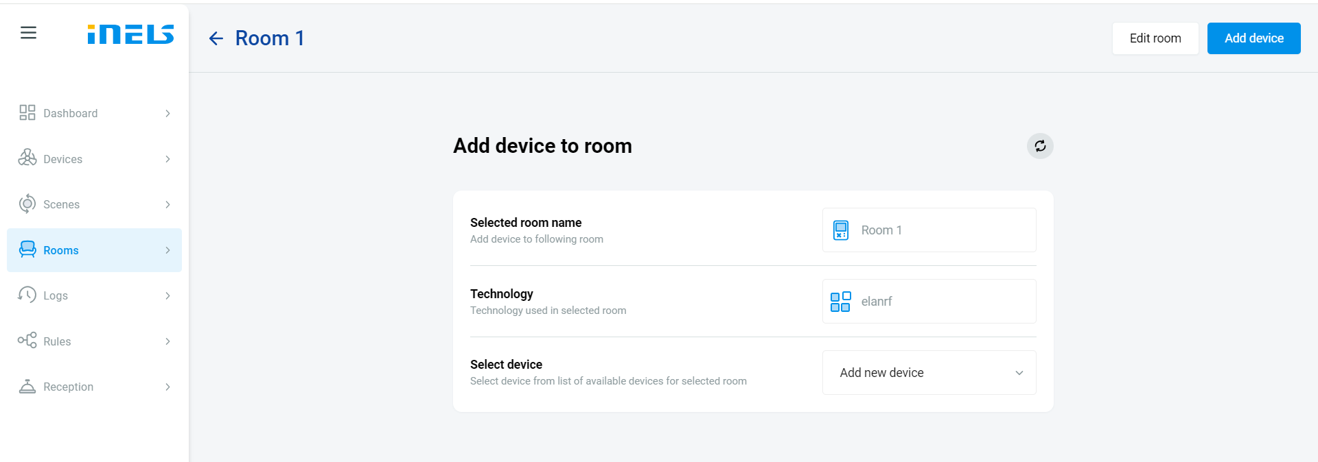 Rooms and devices added via the INELS mobile application on wireless Gateways are automatically integrated into the system.