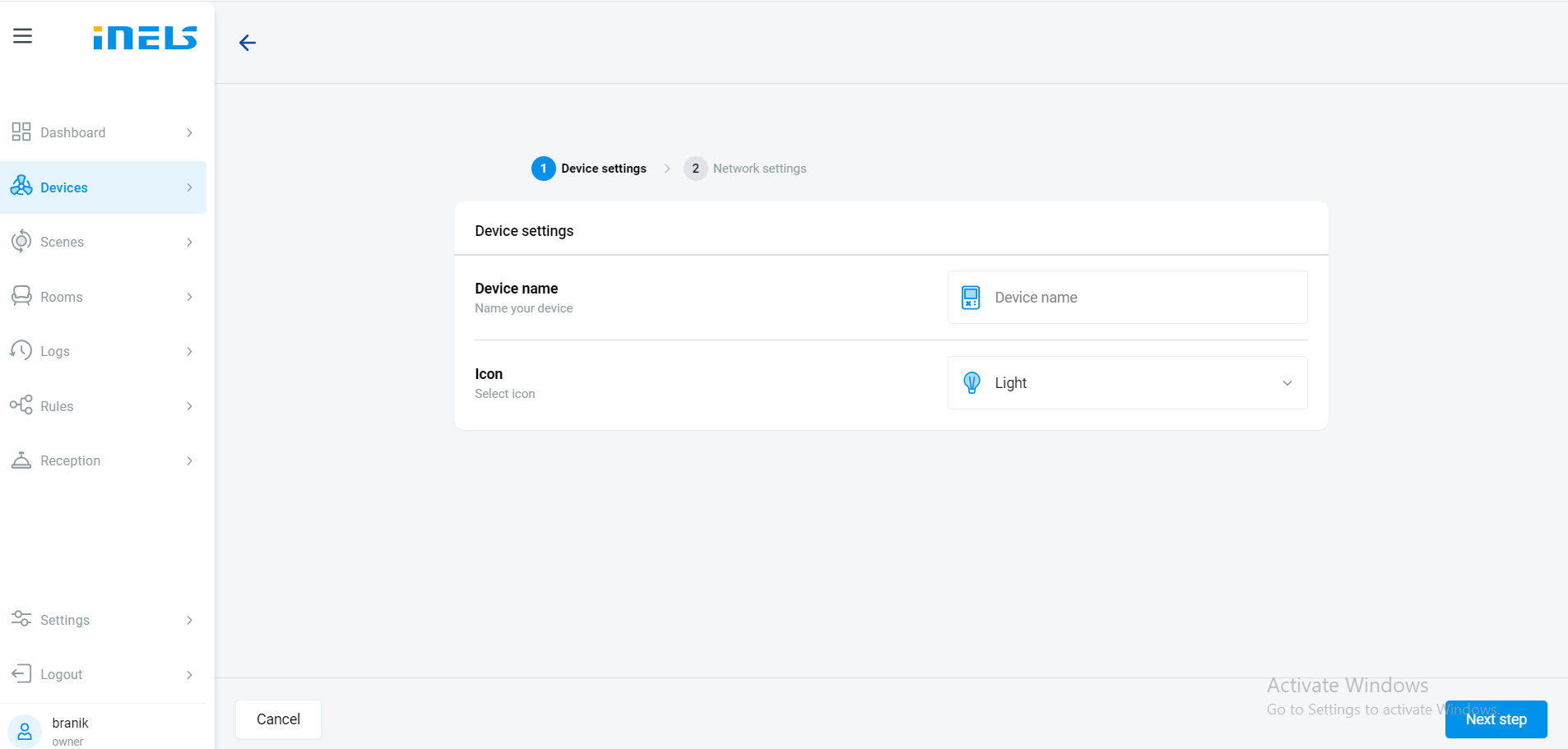 Enter the Device name and Icon. After adding the device name and Icon> Click on the Next step to continue with Network settings.