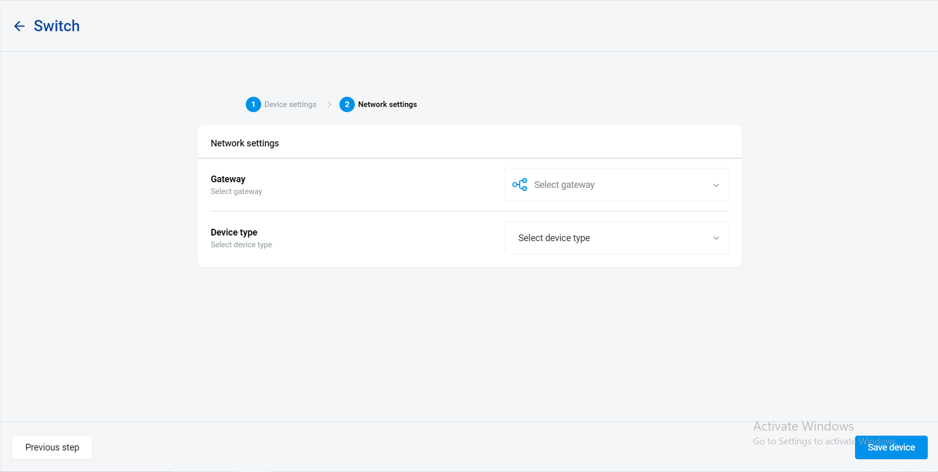 Select the **Gateway (**Choose the Gateway using the Mac address to which the device is connected) and Device type.
