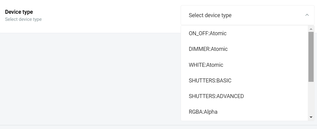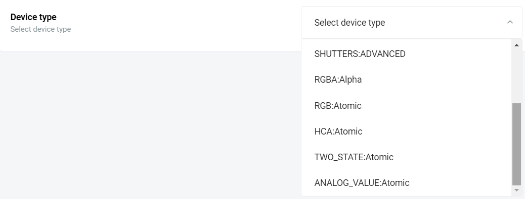Choose Device: Upon selecting the "Add Device" function, you'll be presented with a list of created elements or devices that can be added to the room.