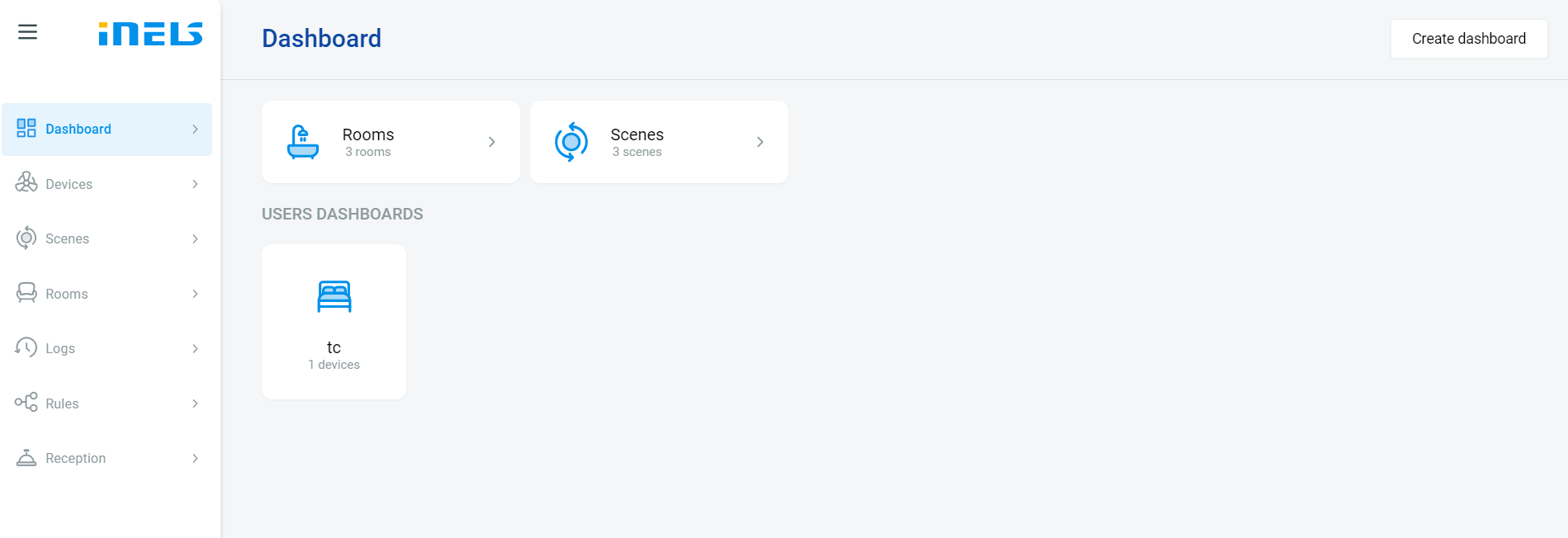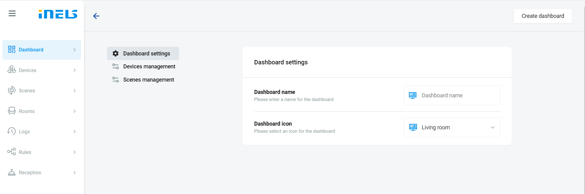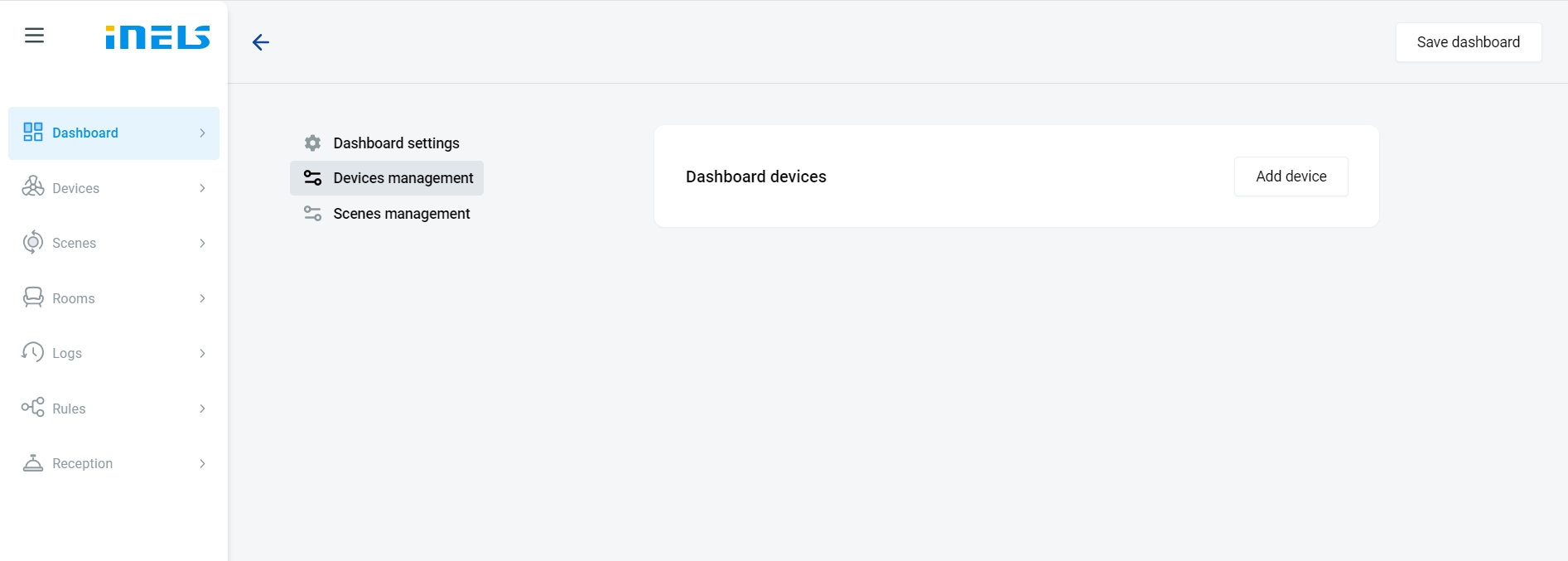 Creating a dashboard in the iNELS cloud account offers several advantages for users. Firstly, it provides a centralized and accessible platform to monitor and control various aspects of the iNELS system, including lighting, heating, security, and energy management. By customizing the dashboard with relevant widgets and controls, users can tailor the interface to their specific needs and preferences, enhancing usability and efficiency.