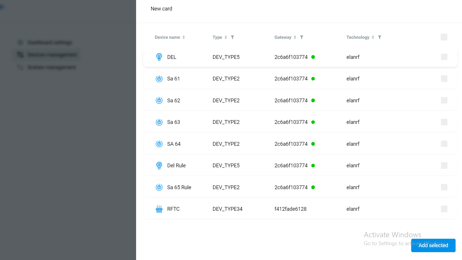 Next, in the Device management section under the dashboards, users can add the devices from all the connected gateways.