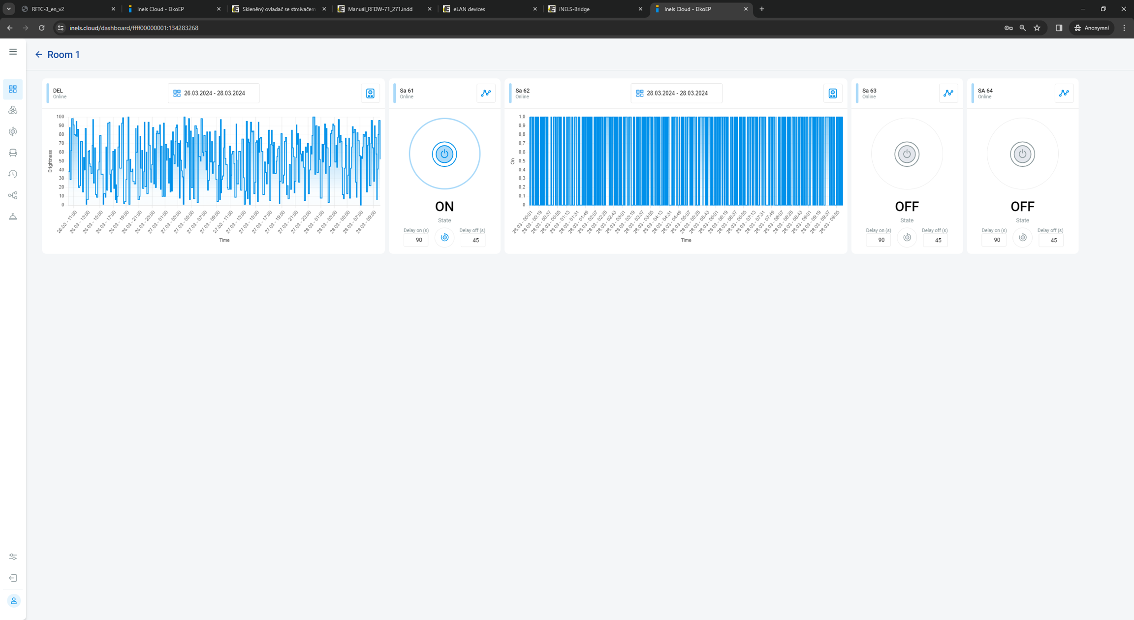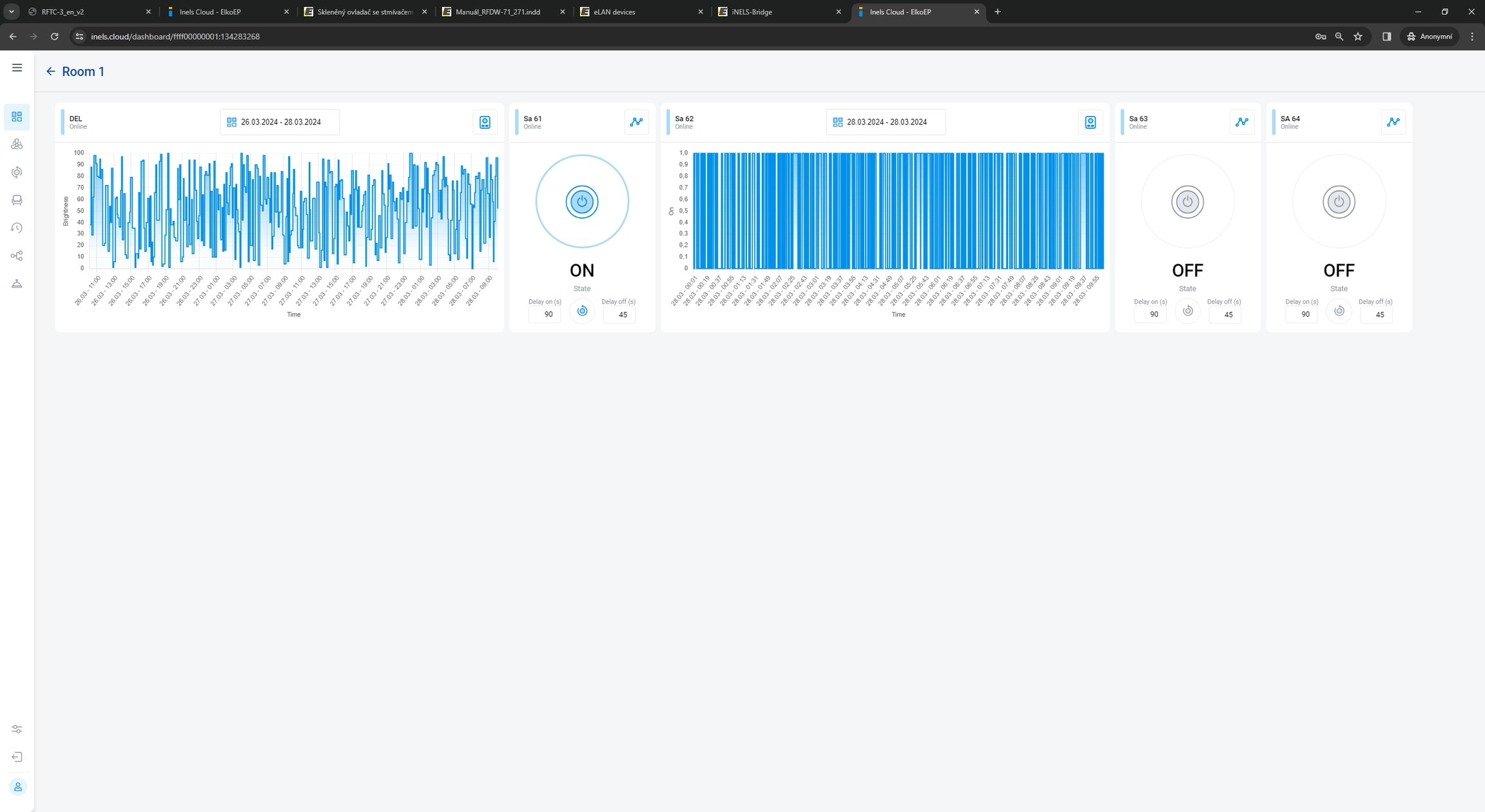 Users can access the graphical representation of event through the dashboard of each room within the INELS Cloud platform.