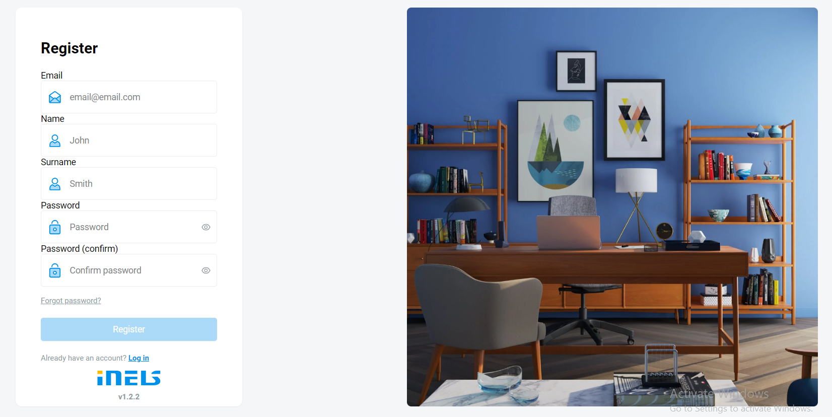 If you do not possess an iNELS cloud account, you can register by completing the registration here https://inels.cloud/auth/register.