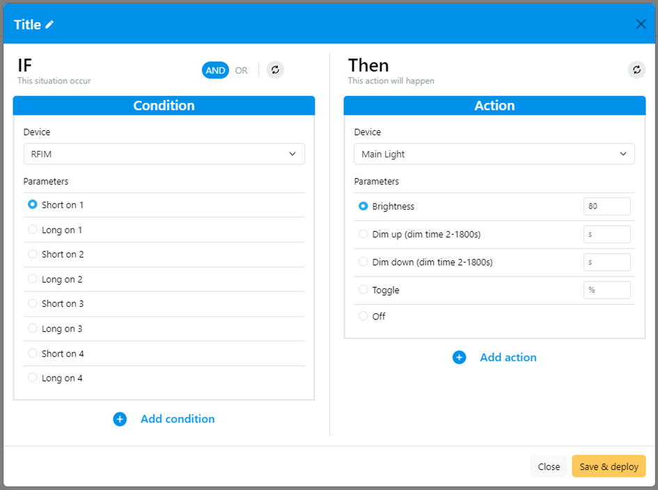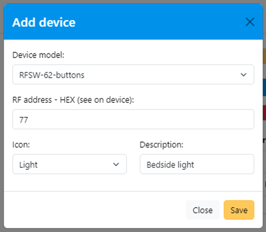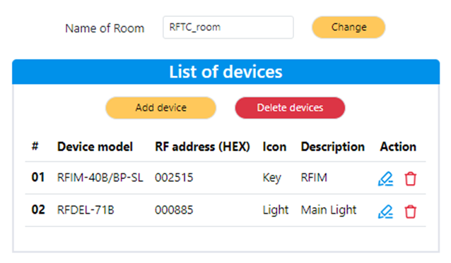 Devices In the "Devices" section, RF devices are added that are then used in rules. These devices serve as input or output points for various automated actions. Adding and managing devices in this section allows users to efficiently create and manage automations in their environment.