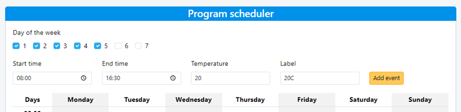 Define Time Segments: Select the days and set the desired time intervals during which heating should operate.